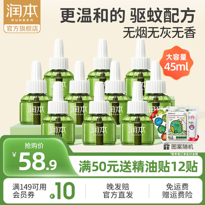 润本(RUNBEN)电热蚊香液无味无灰定时驱蚊器电蚊香防蚊液补充液无香型 45ml 10瓶 无器【回购装】补充装