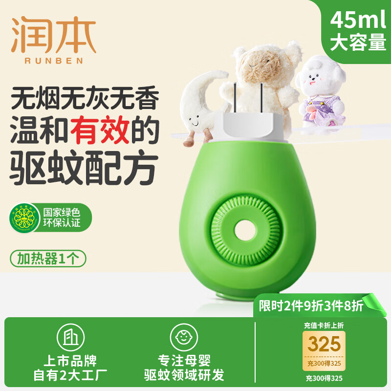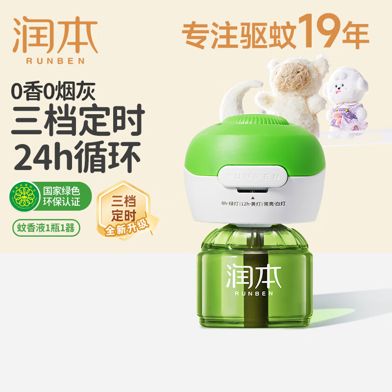 润本(RUNBEN)电热蚊香液无味无灰定时驱蚊器电蚊香防蚊液补充液无香型 45ml 1瓶 3档定时【新购优选】1器