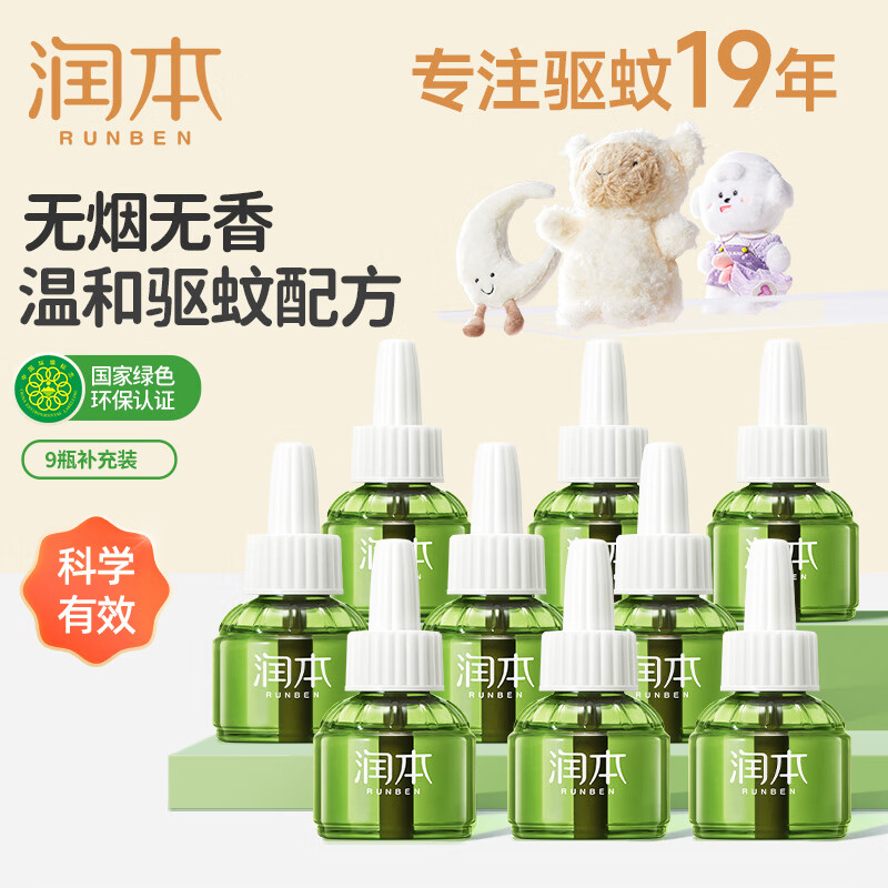润本(RUNBEN)电蚊香液无味无烟驱蚊液插电式蚊香加热器防蚊液 45ml 9瓶 补充液【家庭装】无器