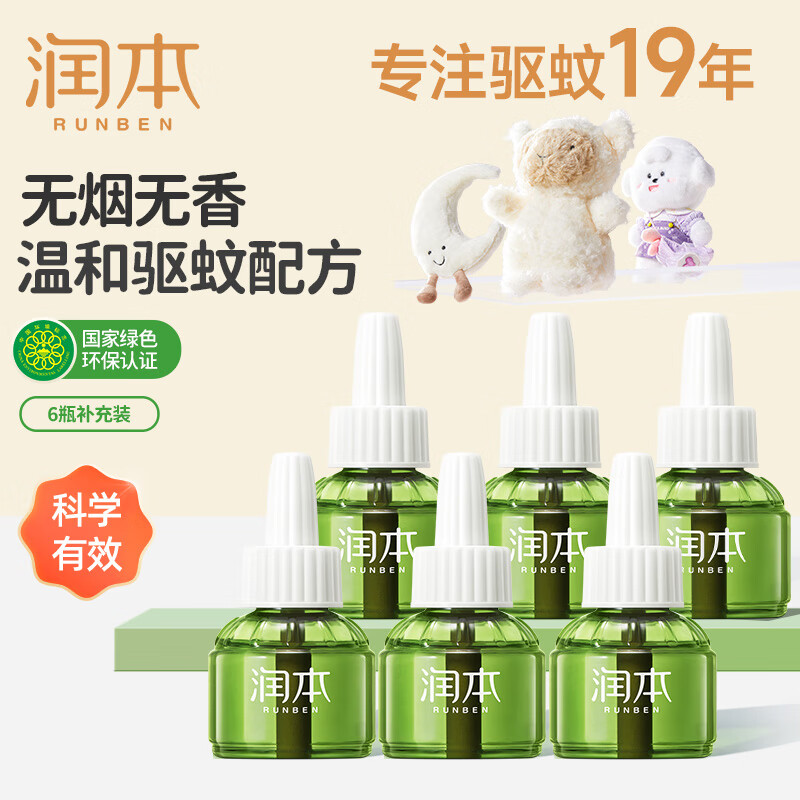 润本(RUNBEN)电蚊香液无味无烟驱蚊液插电式蚊香加热器防蚊液 45ml 6瓶 补充液【回购装】无器