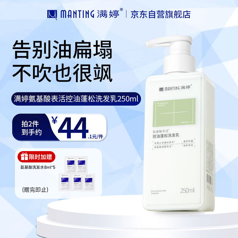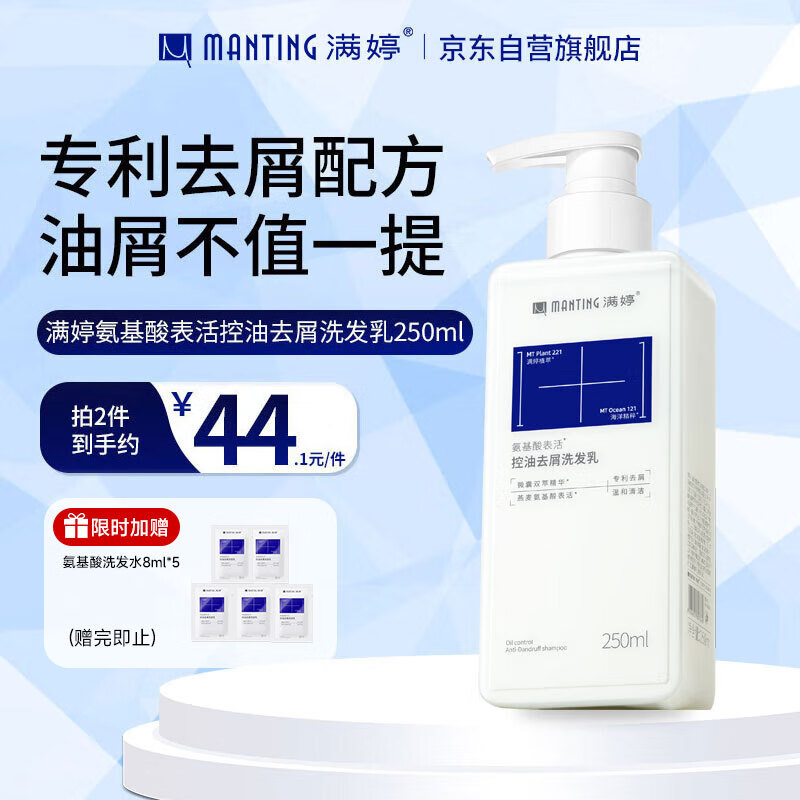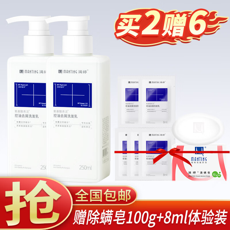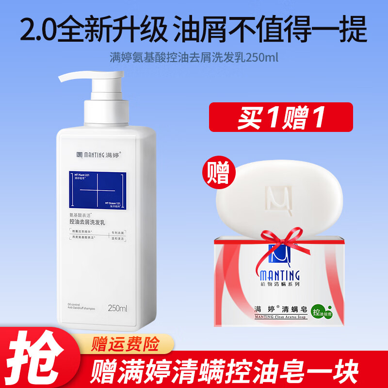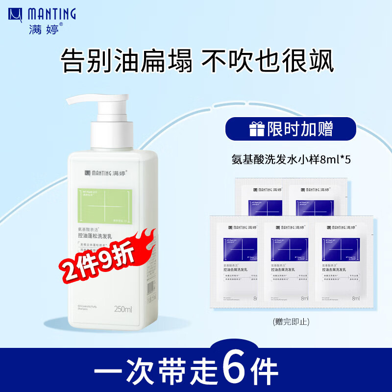 满婷(MANTING)氨基酸控油去屑洗发水250ml*2(清洁舒缓洗发露去头屑洗发乳)