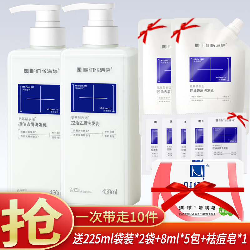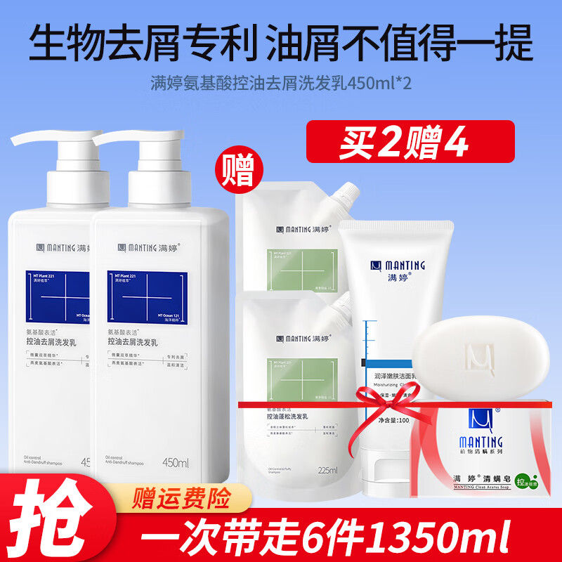 满婷(MANTING)氨基酸控油去屑洗发乳450ml男女青花椒舒缓去油清爽蓬松洗发水液 氨基酸控油去屑洗发水450ml2瓶