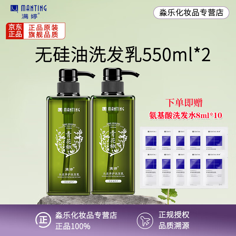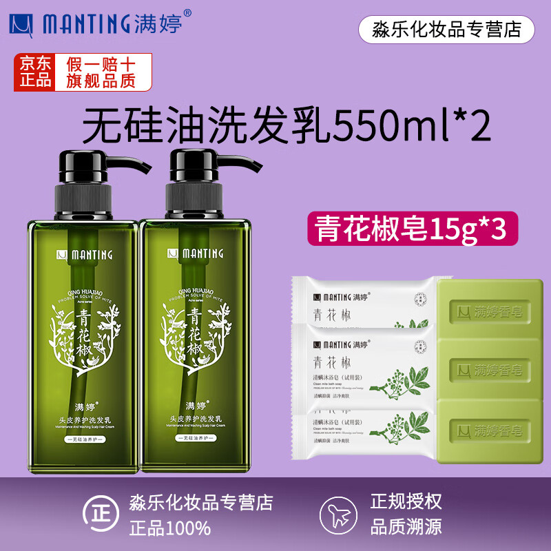 满婷(MANTING)无硅油洗发水青花椒头皮养护洗发乳控油清洁保湿男女修护去屑 无硅油洗发水 550ml*2瓶