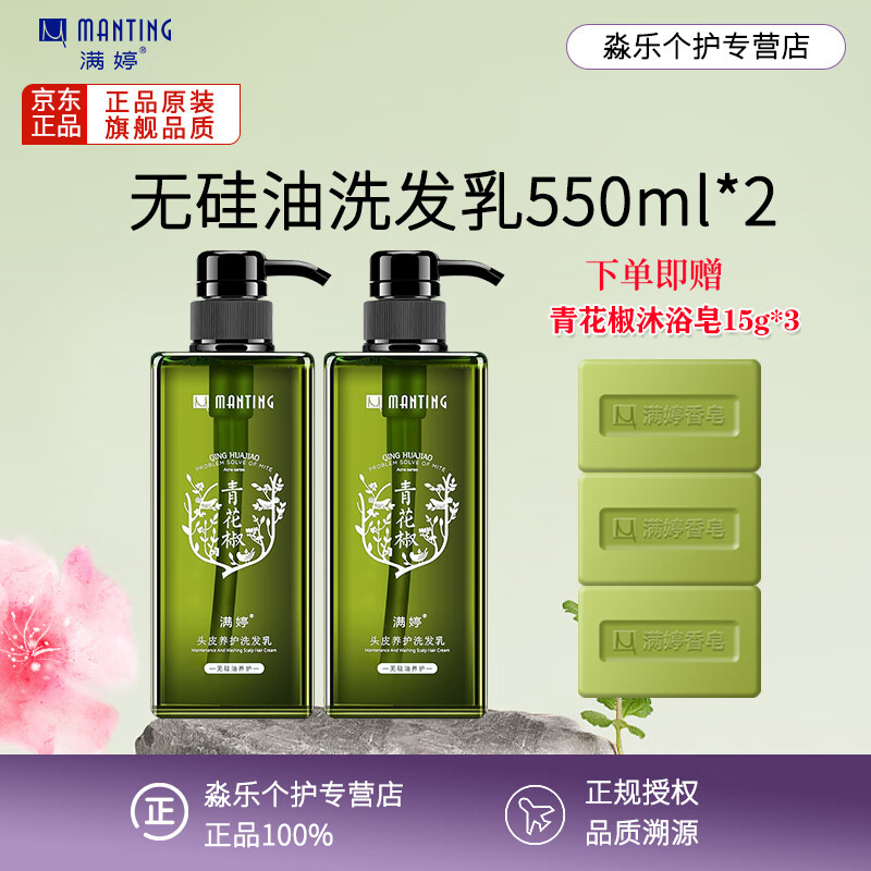 满婷(MANTING)青花椒头皮养护洗发乳550ml*2瓶(无硅油洗发水男女保湿控油去油)