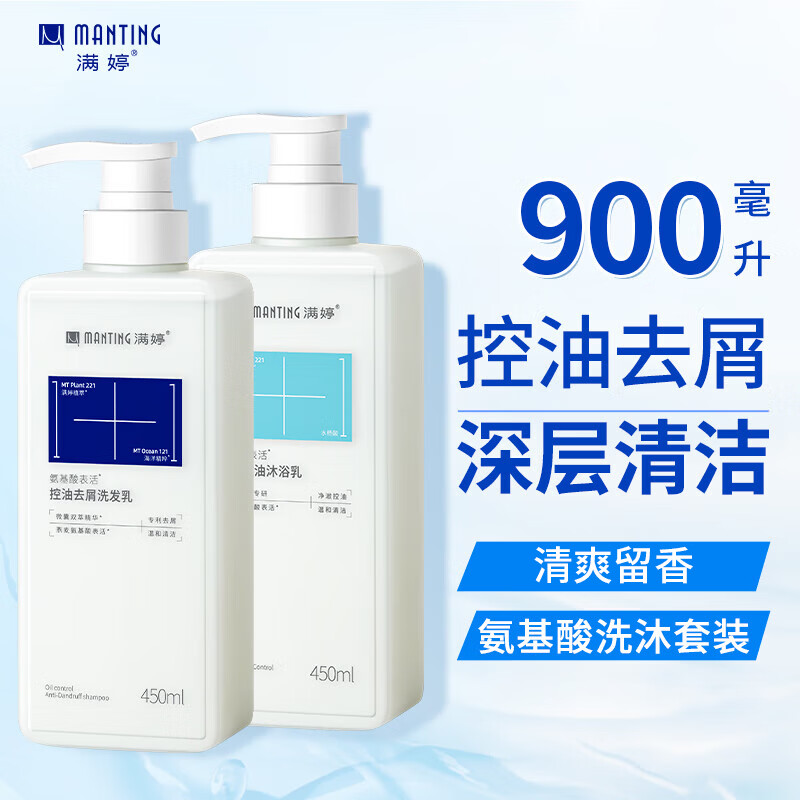 满婷(MANTING)氨基酸洗发乳沐浴露套装(洗发水+沐浴乳控油去屑清爽洁净)