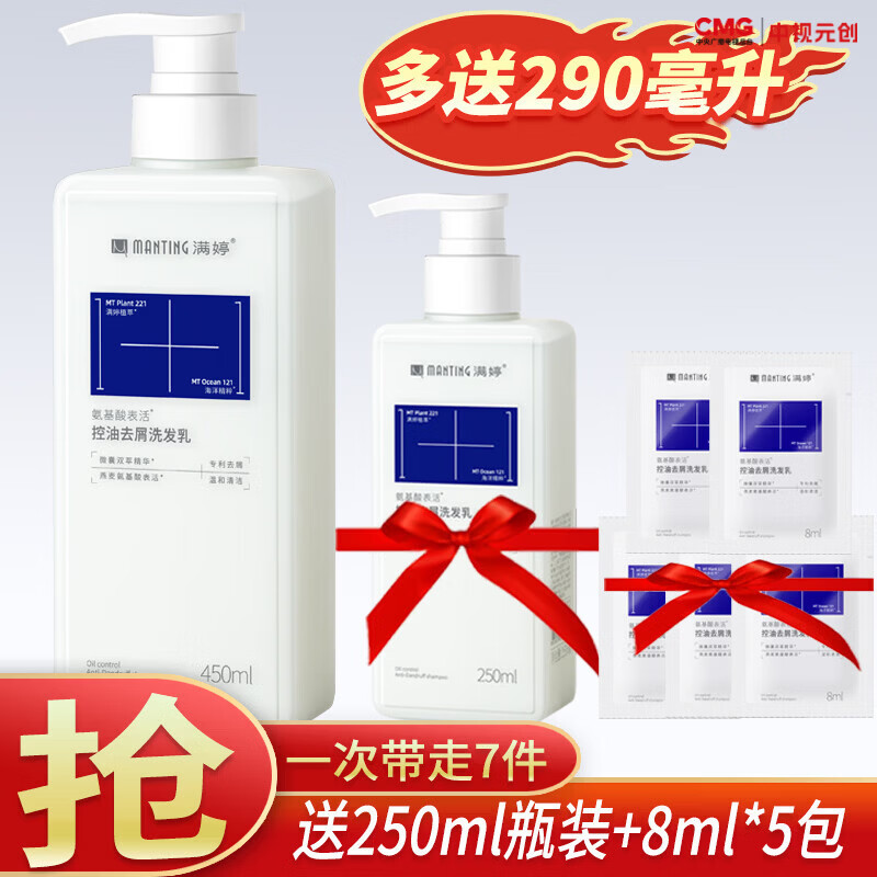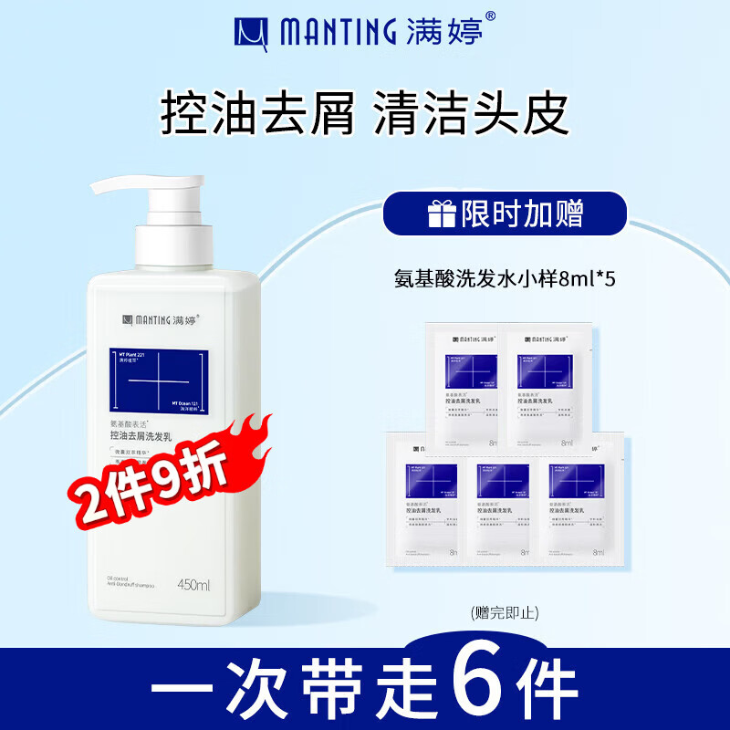 满婷(MANTING)氨基酸控油去屑洗发乳450ml男女青花椒舒缓去油清爽蓬松洗发水液 氨基酸控油去屑洗发水450ml1瓶