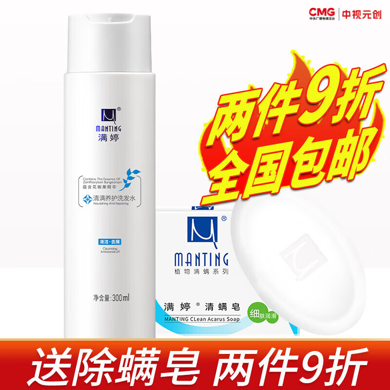 满婷(MANTING)满婷洗发水沐浴乳套装养肤沐浴露去屑控油洗发水赠去螨虫除螨皂 洗发水300ml*2瓶