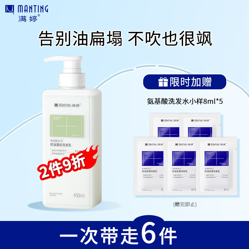 满婷(MANTING)氨基酸表活控油蓬松洗发乳450ml(去油女士油性头皮洗发水)