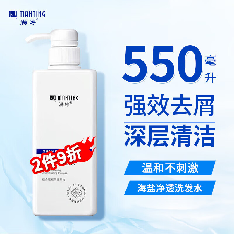 满婷(MANTING)清满海盐净透洗发水550ml(除螨皂强效去屑洗发露洗头膏男女士)