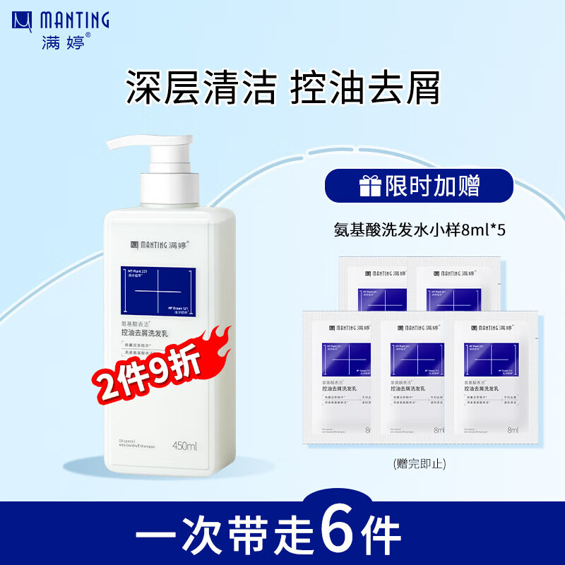 满婷(MANTING)氨基酸表活控油去屑洗发乳450ml(洗发水男女士清爽洁净洗发露)