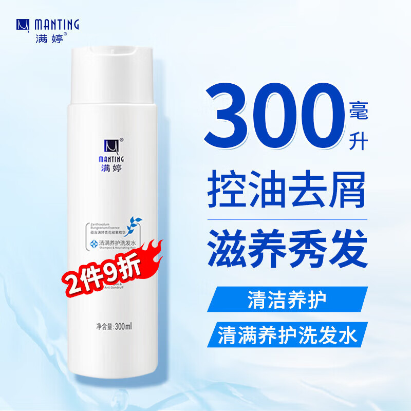 满婷(MANTING)清满养护洗发水300ml*2(洗头去油女士控油去屑洗发露滋养修护)