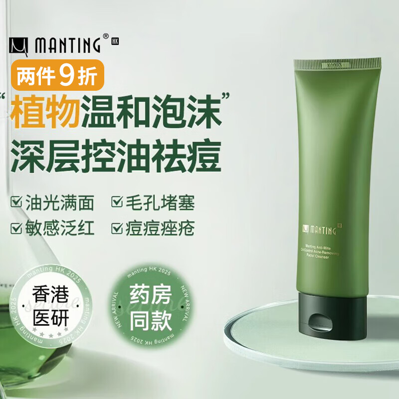 满婷(MANTING)HK温和祛痘洁面霜 100g(男女士控油洗面奶改善油皮痘肌水油平衡)