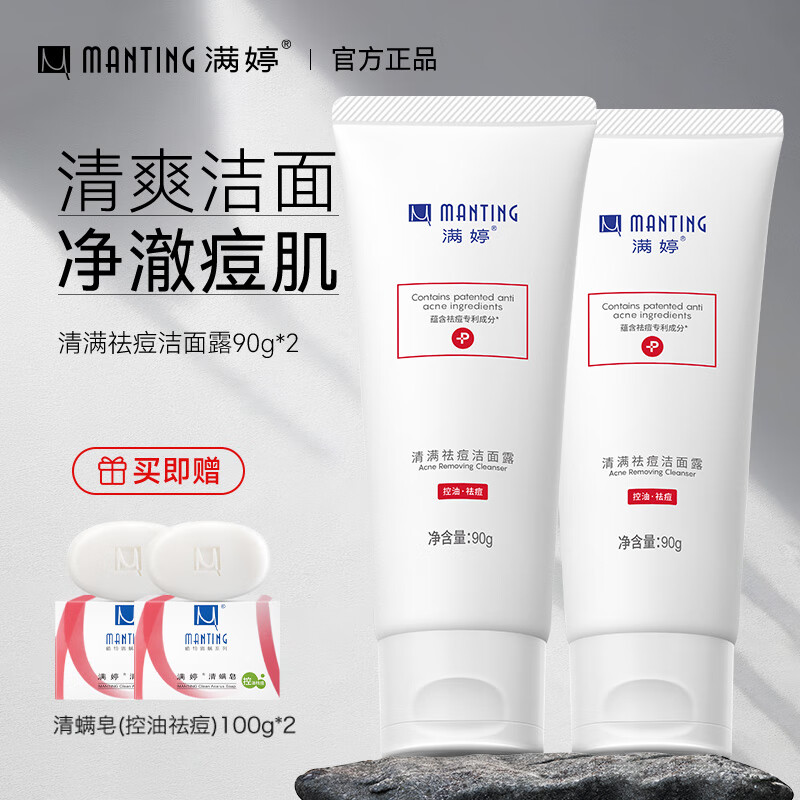满婷(MANTING)控油祛痘洁面露90g洁面乳洗面奶男女士赠除螨清洁控油皂 祛痘洁面乳2支