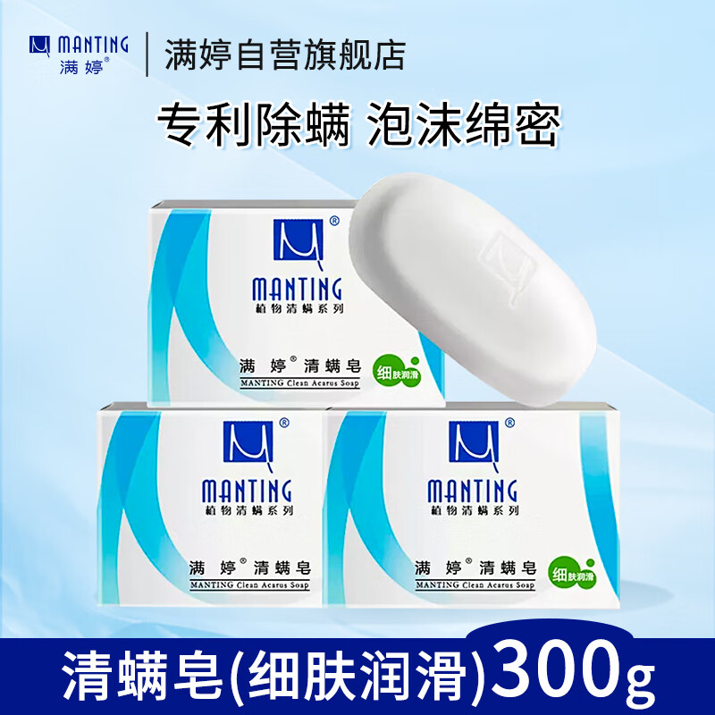 满婷(MANTING)清螨皂(细肤润滑)100g*3(除螨香皂去螨虫螨婷洗面奶男女士专用)