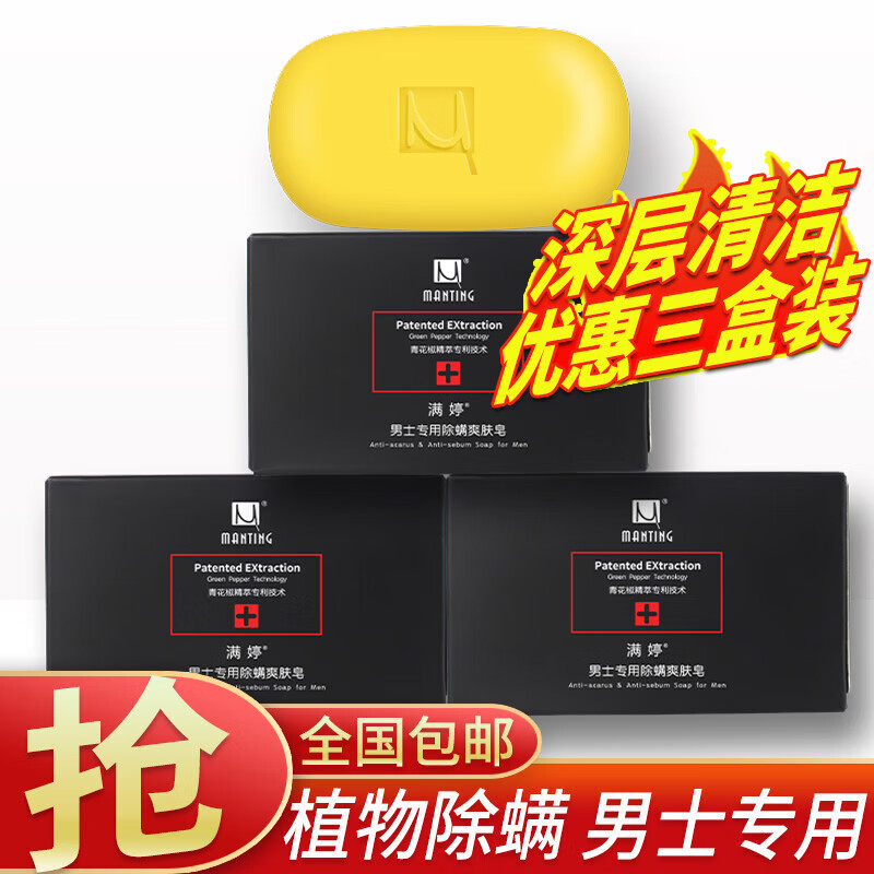 满婷(MANTING)男士专用除螨爽肤皂108g*3块(去螨虫香皂螨婷肥皂洁面皂沐浴露)