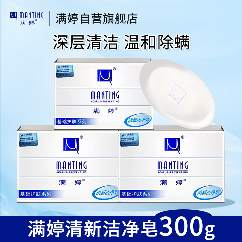 满婷(MANTING)清新洁净香皂100g(螨婷除螨皂洗面奶洁面皂沐浴皂肥皂男女专用)