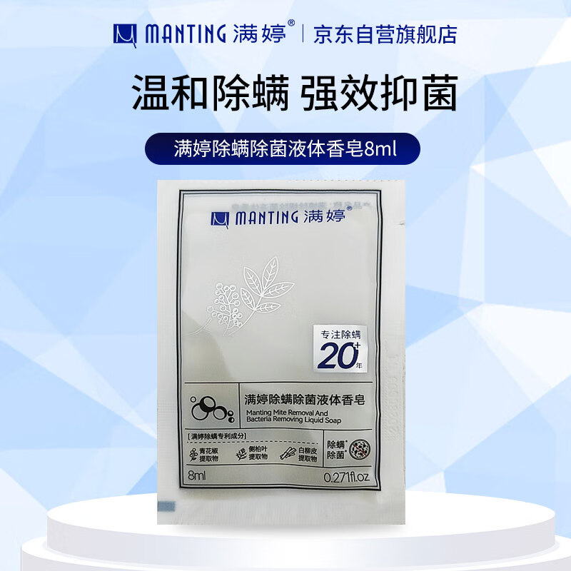 满婷(MANTING)除螨除菌液体香皂试用装8ml(非硫磺三合一沐浴露男女洗发水)