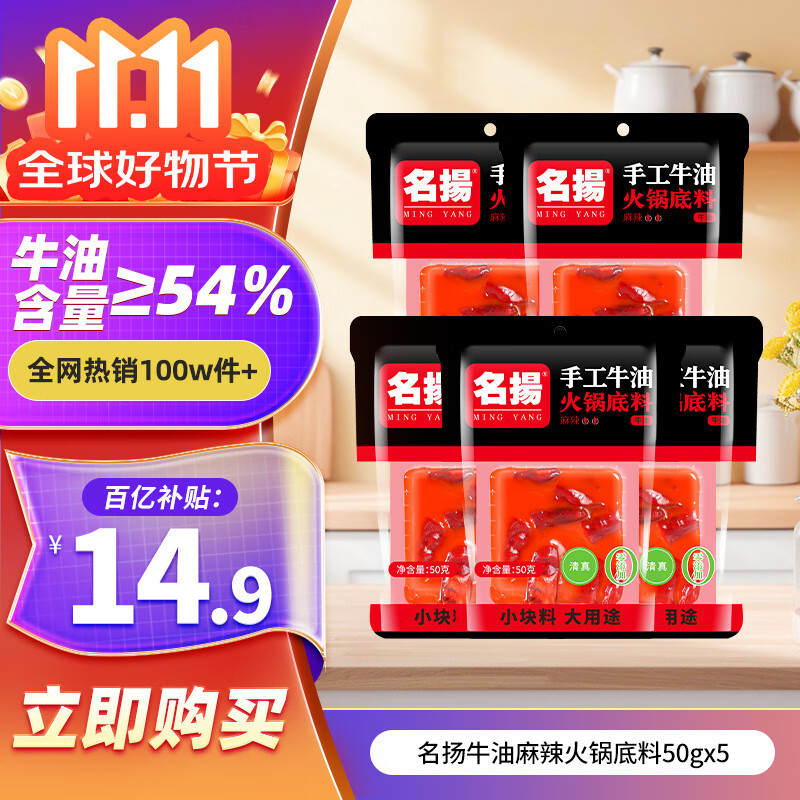 名揚名扬火锅底料小块料50g牛油麻辣川味特产 单袋装更方便 手工全型 牛油麻辣250g(内含50g*5袋)