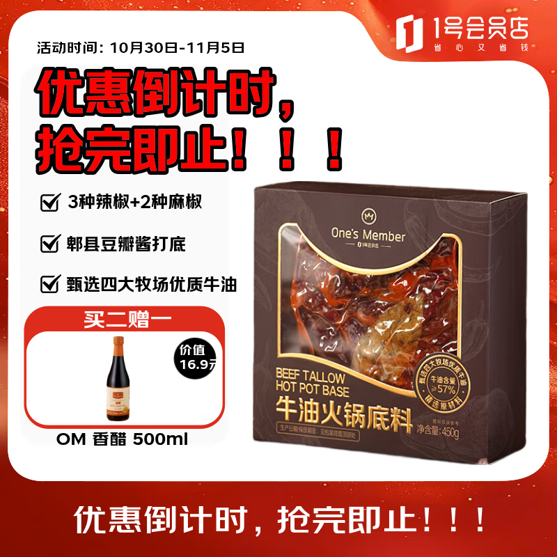 One's Member牛油火锅底料 450g 麻辣烫香锅冒菜干锅四川风味