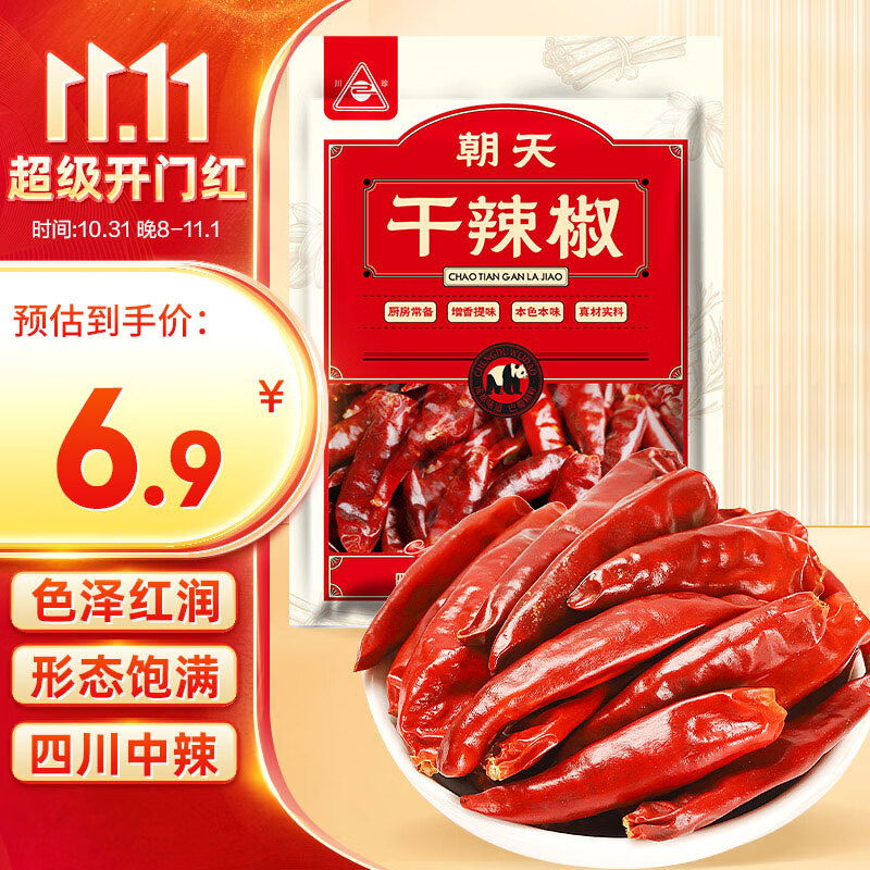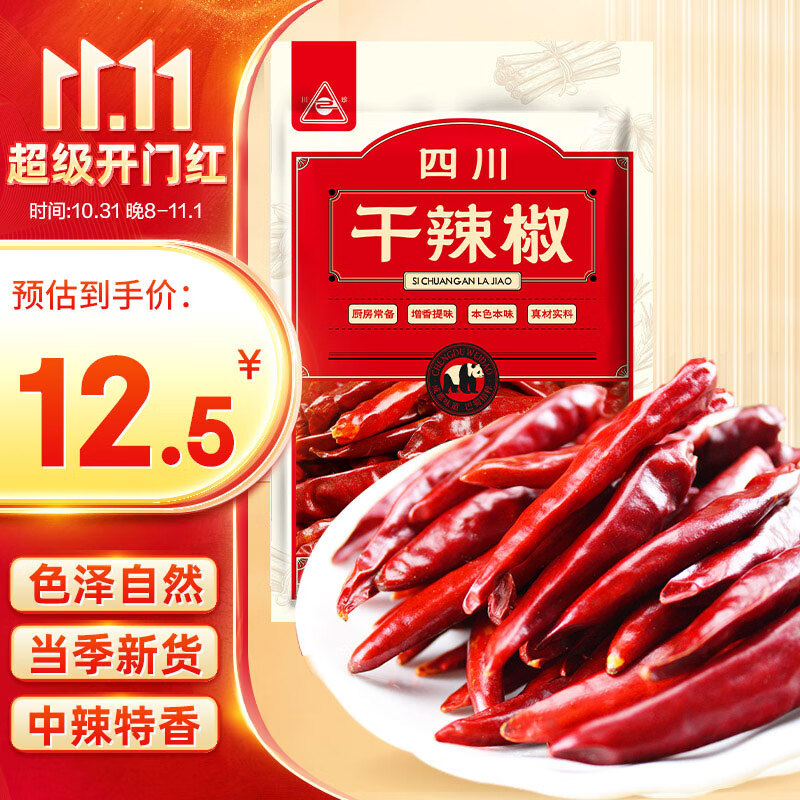川珍干辣椒100g袋装 香辣朝天红辣椒干货 四川火锅调料干锅底料香辛料