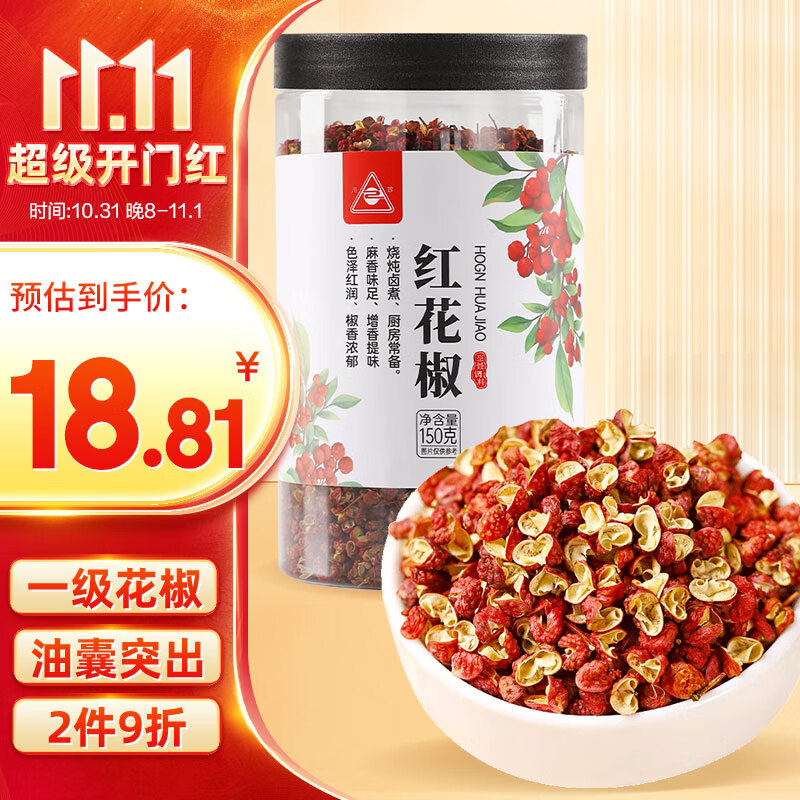 川珍红花椒150g罐装 一级麻椒 干花椒粒 火锅底料烧卤调味料 香辛料