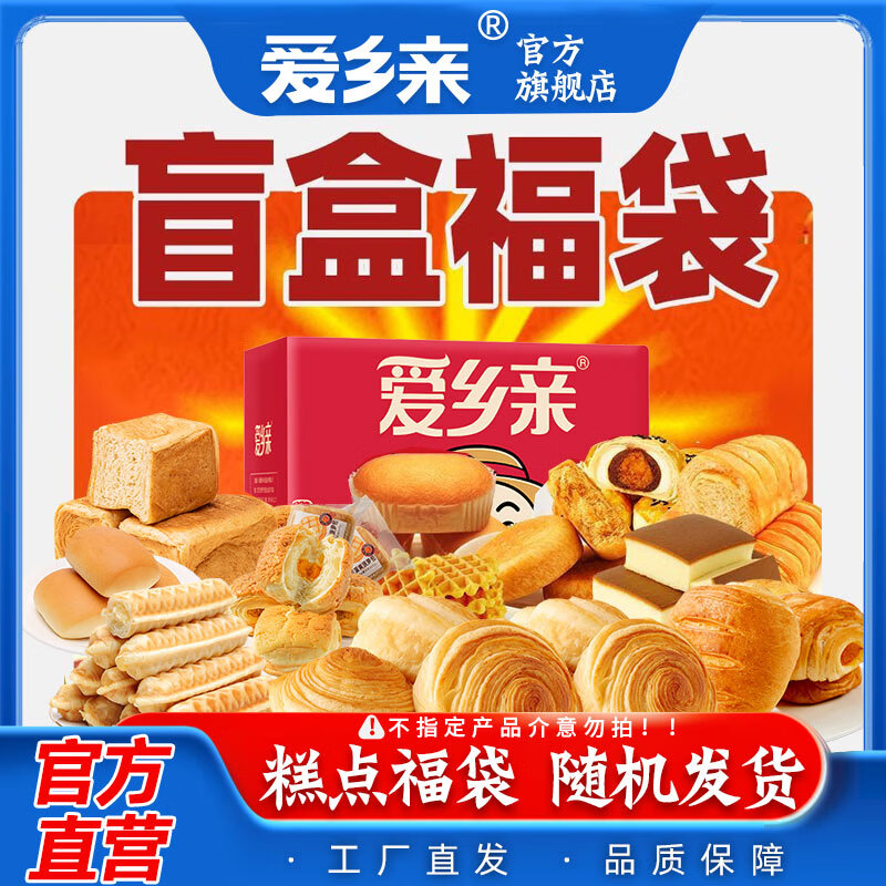 爱乡亲1000g面包糕点福袋盲盒早餐面包蛋糕食品整箱解馋宿舍零食大礼包 1000g 面包糕点福袋盲盒
