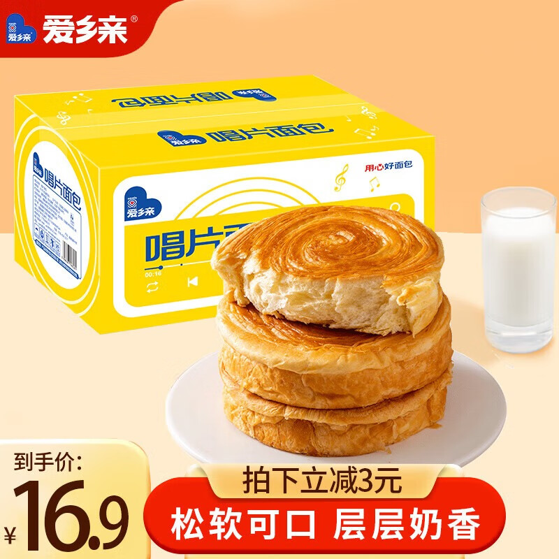 爱乡亲唱片面包整箱早餐糕点心代餐下午茶解饿夜宵休闲零食品小吃 爱乡亲(唱片面包)1斤