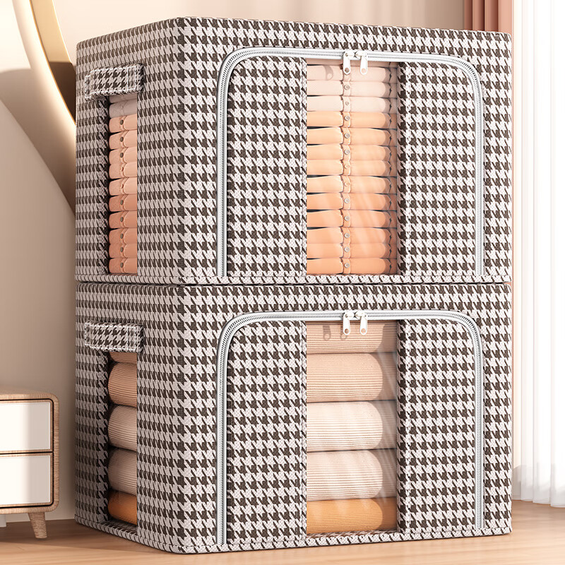 洁百纳衣服收纳箱衣柜家用衣物棉被整理箱大容量牛津布折叠储物筐袋神器 【双窗千鸟格】加厚牛津布 72L【50*40*33cm】