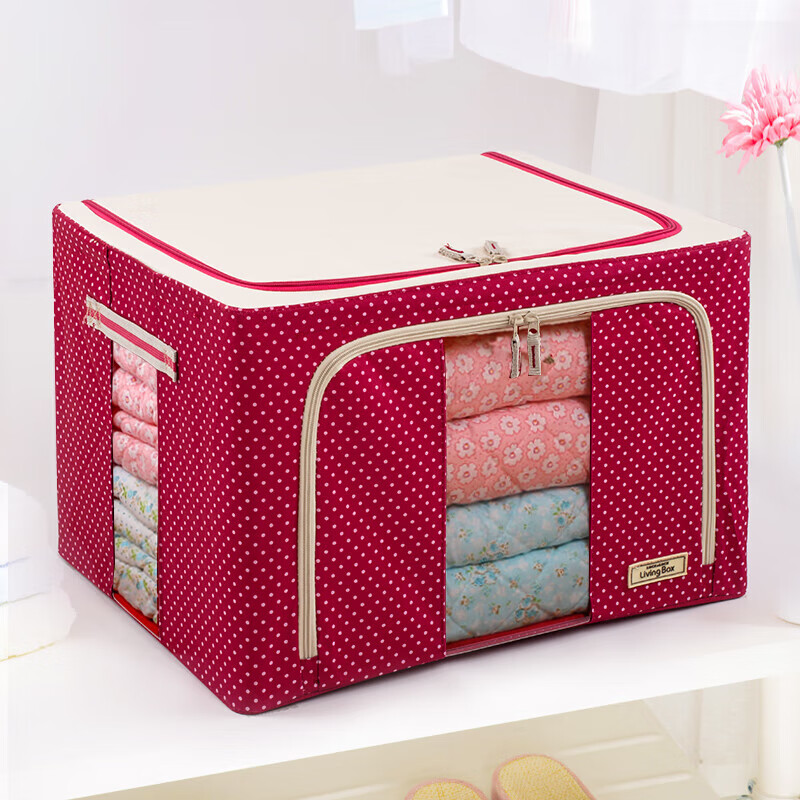 乐扣乐扣爱locklove乐扣收纳箱牛津布钢架百纳衣物整理衣柜布艺储物箱 【新款】红点 100升【四钢架】