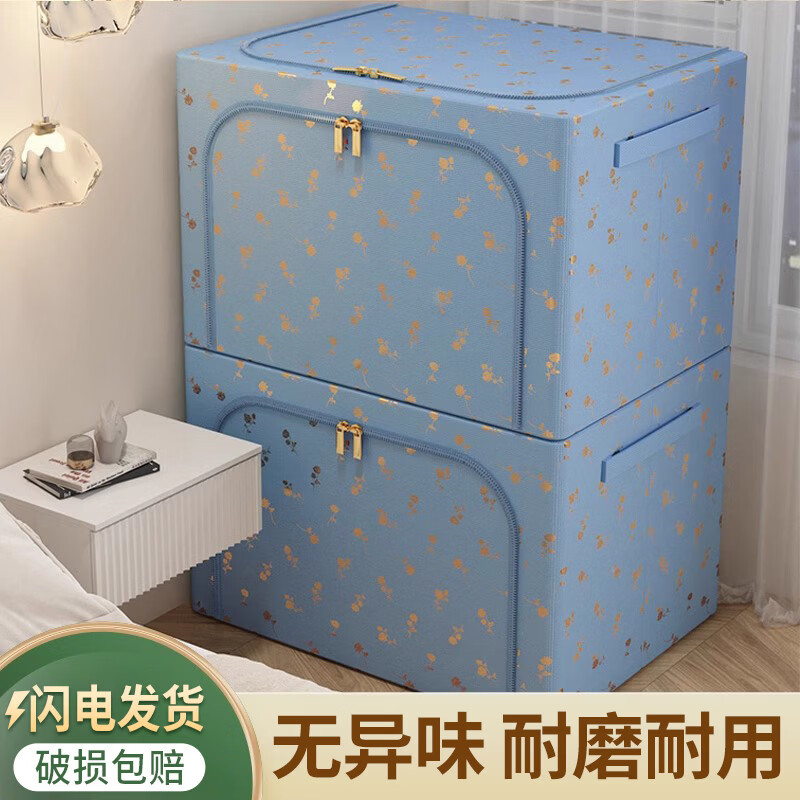 沃尊衣服收纳箱牛津布百纳箱家用衣柜整理羽绒衣物折叠储物盒被子专用 藏青色【三面开窗】牛津布 66L【50*40*33cm】加粗钢架