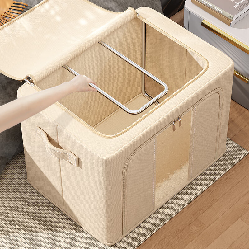 洁百纳衣服收纳箱家用大容量衣柜装衣物牛津布整理盒神器布艺可折叠储物 米白色【无视窗】加厚牛津布 30#【加粗钢架 | 结实耐用】