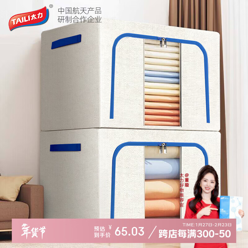 太力收纳箱衣服棉被布艺整理箱储物百纳箱一个装【牛津布收纳箱】66L 海鸥灰【66L】2个装50*40*33cm