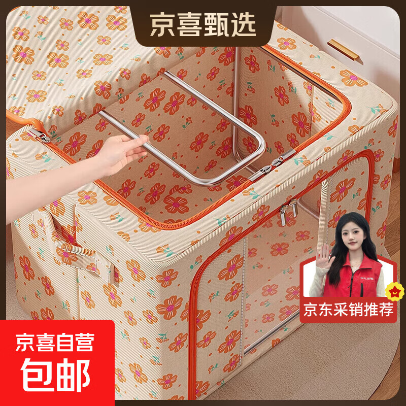 友纳同款衣服收纳箱家用大容量衣物整理盒布艺可折叠储物百纳箱 暖冬橙【大视窗】加厚牛津布丨加粗钢架 110#【长60*宽42*高40cm】