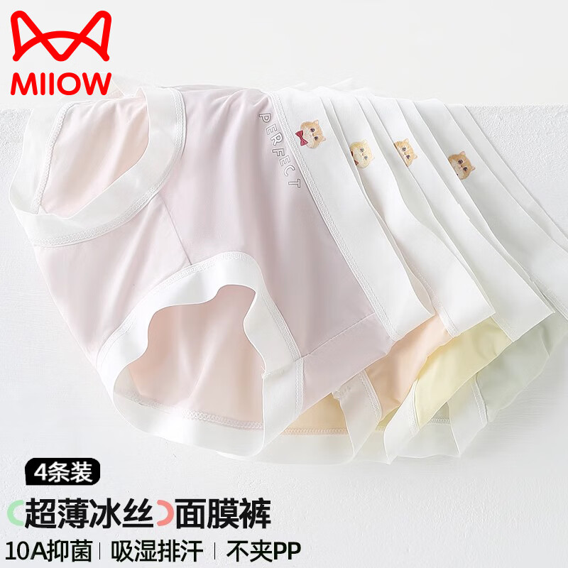 猫人儿童冰丝内裤女童抑菌发育期学生中大童夏季薄款无痕三角平角短裤 欢乐猫咪【三角款】 4条 170