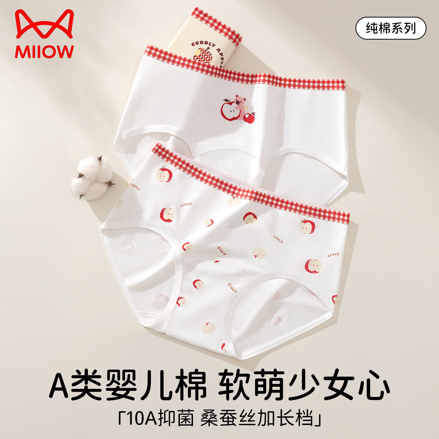 猫人儿童纯棉短裤女大童小学生10A抗菌三角裤少女宝宝婴儿棉面料内裤