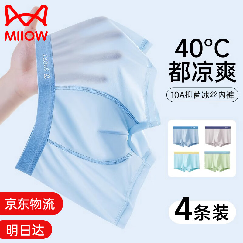 猫人儿童内裤男童冰丝凉感夏薄款10A抗菌中小童青少年男孩平角短裤衩 竹绿+蓝兰+黄兰+浅灰 130 建议50-60斤,120-130cm