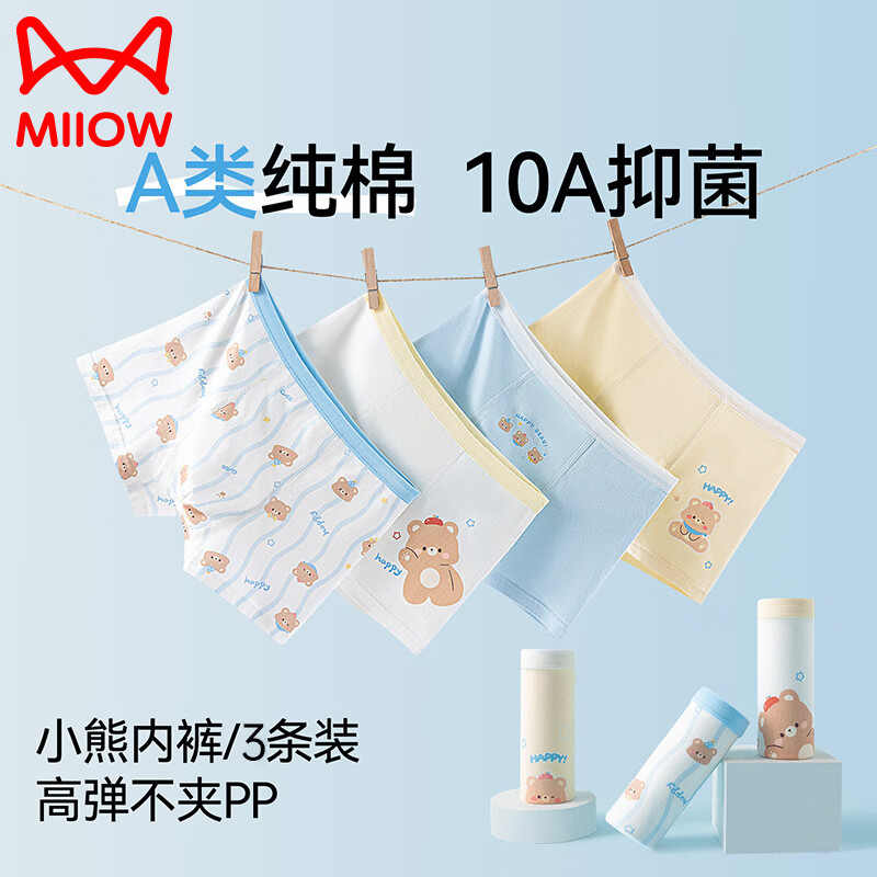 猫人儿童内裤男童四季【纯棉+7A抑菌+桑蚕丝内裆】四角短裤宝宝打底裤