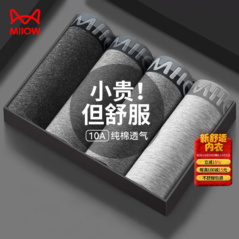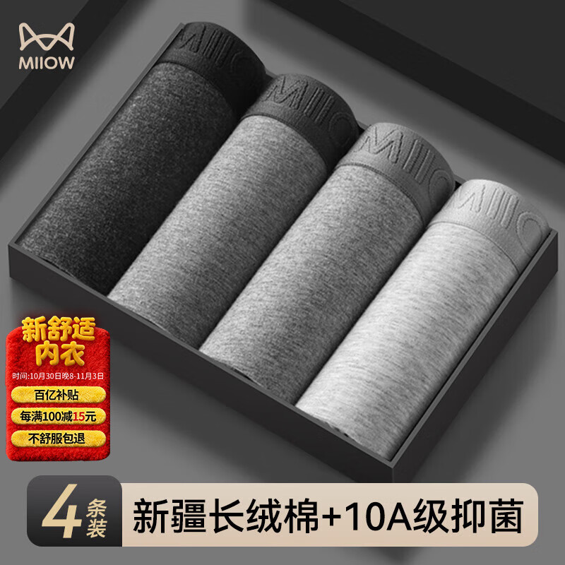 猫人【棉中精品-品质无忧】内裤男士内裤纯棉10A全棉抗菌平角短裤4条