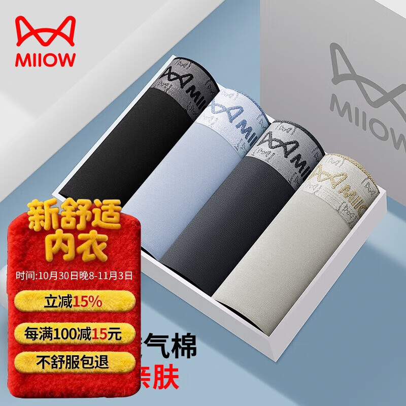 猫人【精梳棉-安心品质】男士内裤男纯棉抗菌蚕丝裆男生四角平角短裤