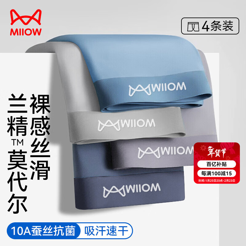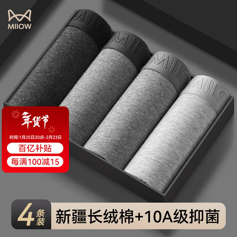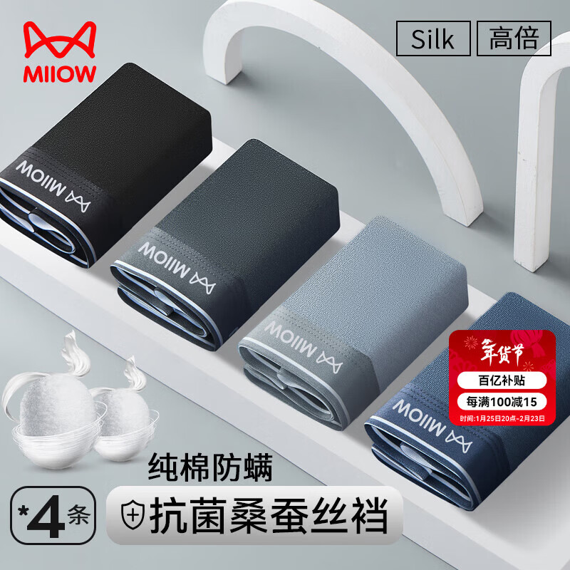 猫人【精梳棉-安心品质】男士内裤男纯棉长效抗菌蚕丝裆男生四角短裤