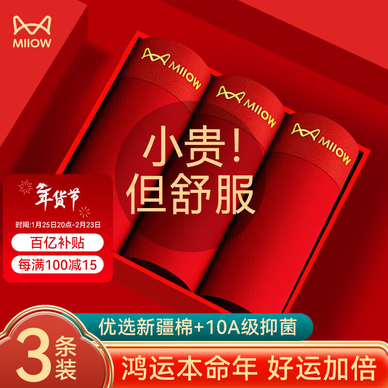 猫人(MiiOW)本命年马年红色内裤抗菌男生结婚男士内裤男纯棉四角裤头平角裤衩