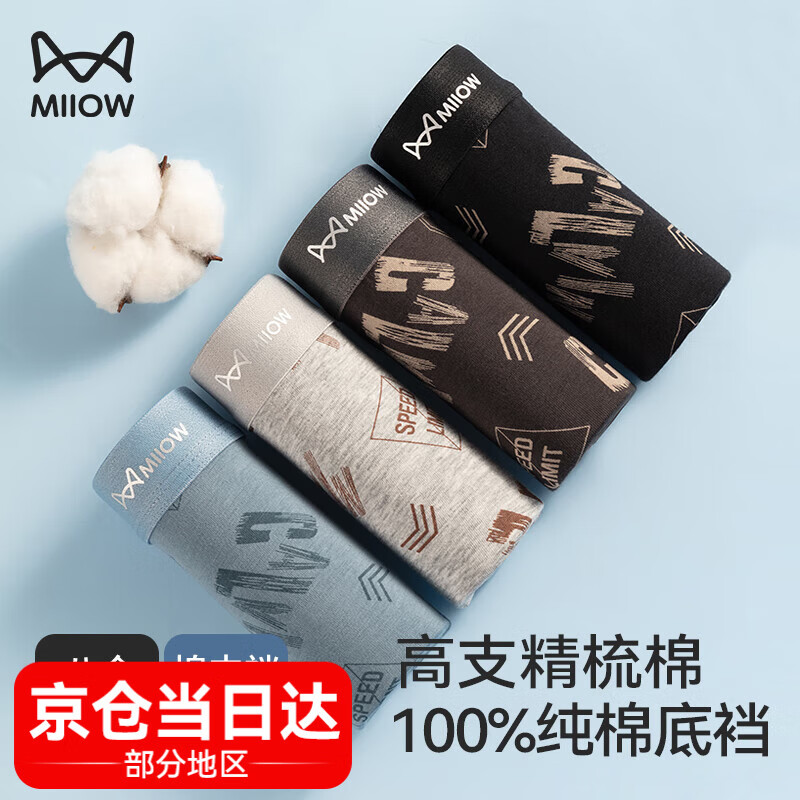 猫人(MiiOW)男士内裤男时尚印花内裤60S新疆精梳棉100%纯棉抑菌底裆 4条装