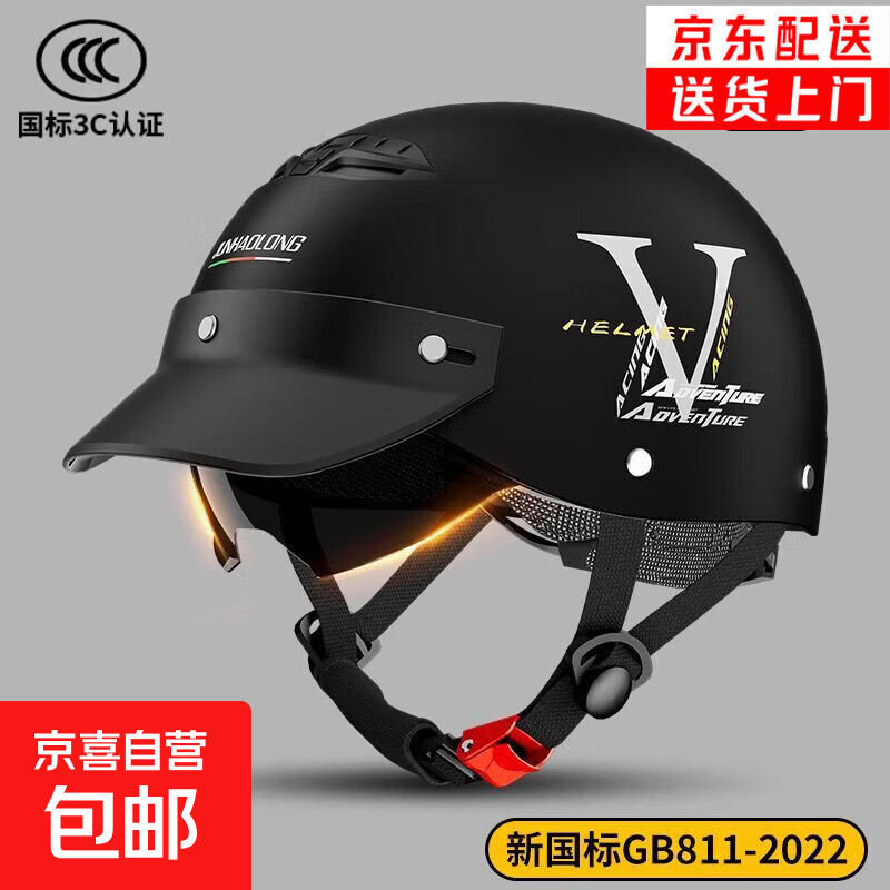3C认证电动车头盔男女士夏季安全帽摩托车半盔电瓶车防晒四季通用 3C认证夏季【哑黑】帽檐+防晒内镜片 头围大小可调节+内衬可拆清洗