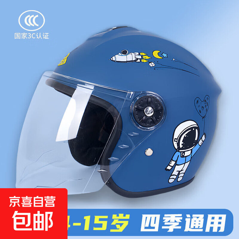电动车头盔儿童头盔四季通用可爱男孩女孩安全帽小孩电瓶车骑行帽子保暖 太空人/深蓝色
