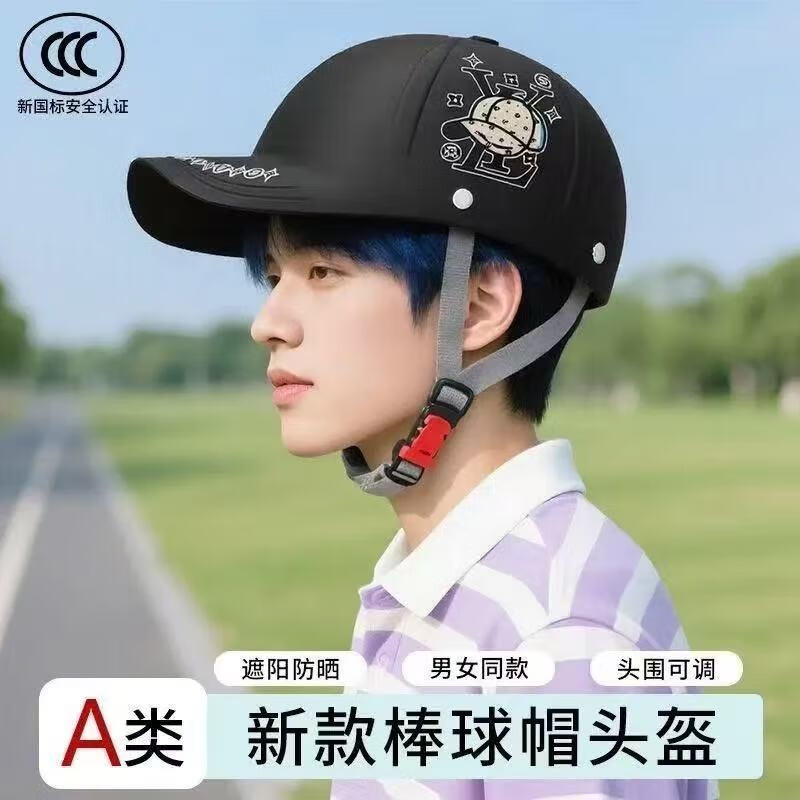 【骑行推荐】国标认证电动车头盔男女夏季防晒四季鸭舌通用 哑黑