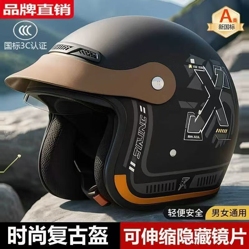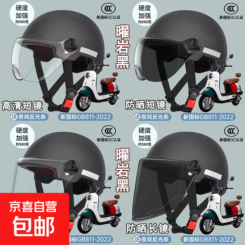 电动车头盔新国标3c认证安全帽夏季电瓶摩托车半盔四季通用男女士 曜岩黑【含反光条】 赠送【防晒长镜】