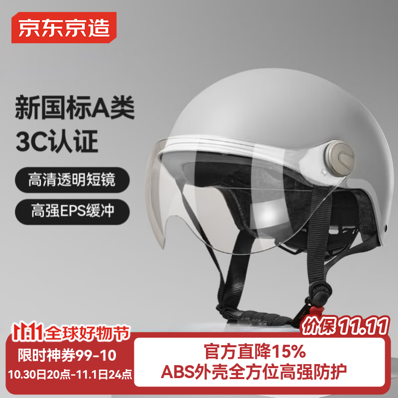 京东京造 TK22电动车头盔 3C认证新国标A类基础款男女通用电瓶车头盔浅灰M码
