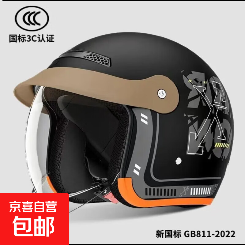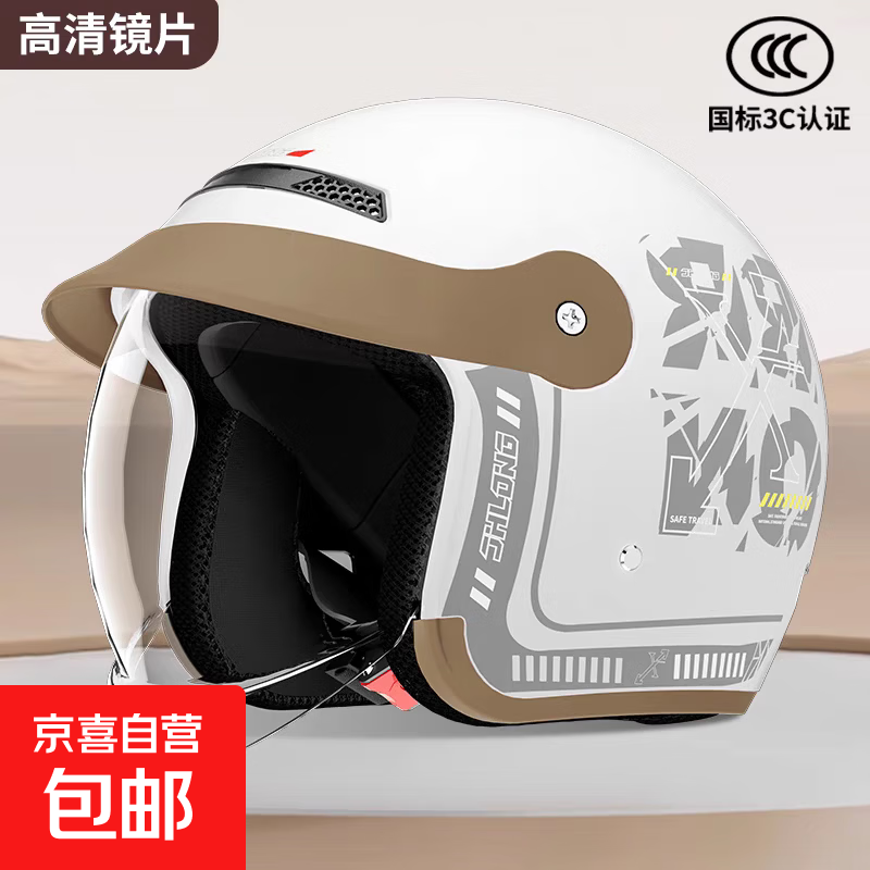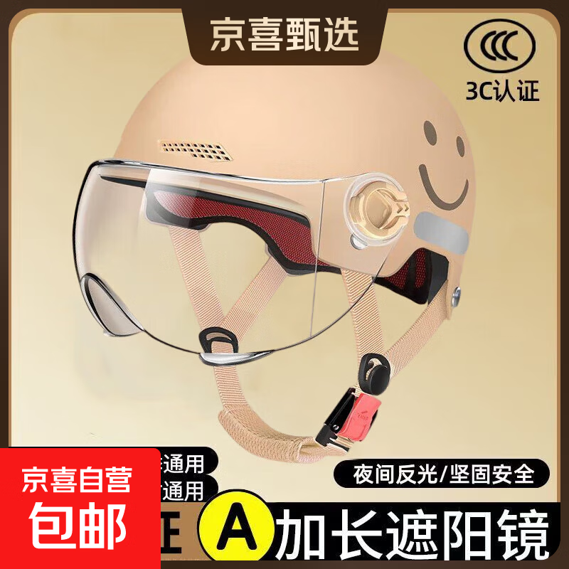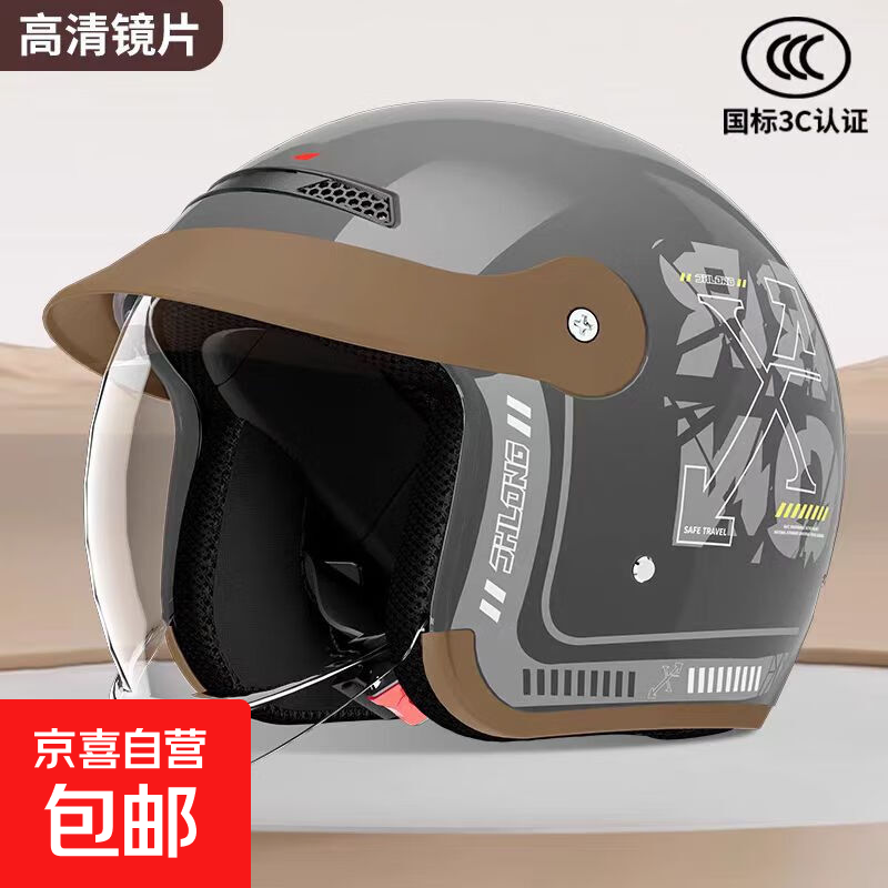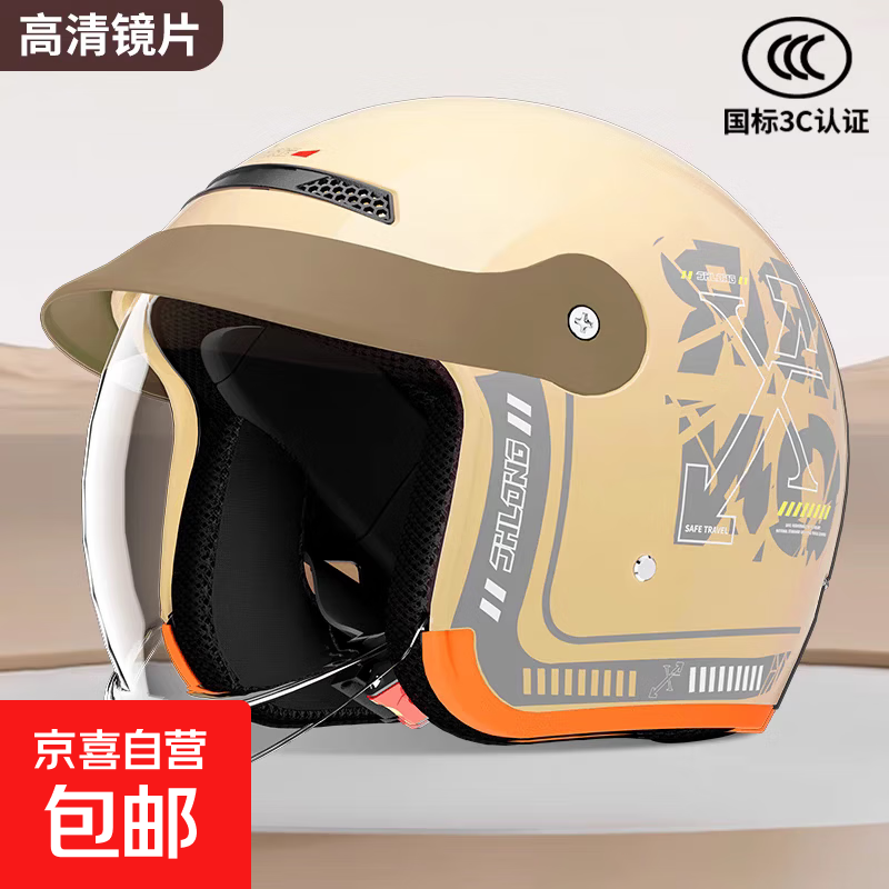 两只小蜜蜂3C认证电动车头盔男女士电瓶摩托车3/4盔冬季防雾四季通用安全帽 3C卡其色【防雾双镜】新国标A 建议女士【头围54-59cm】
