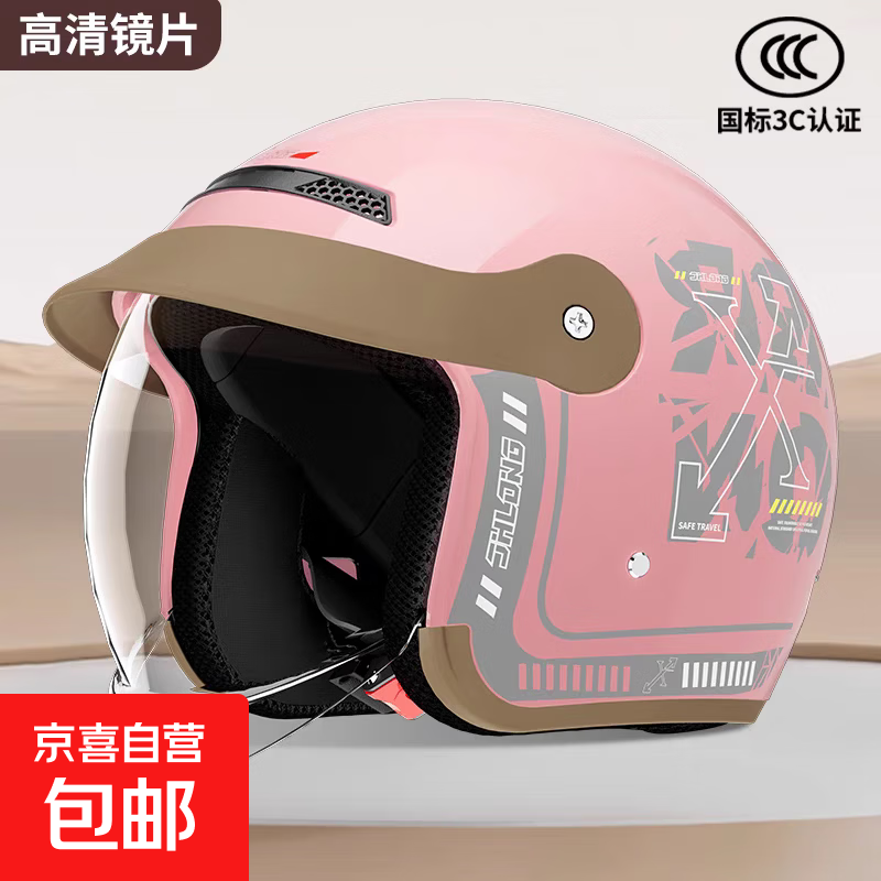 3C认证电动摩托车头盔内推式男女四季通用半盔冬季保暖骑行安全帽 粉色-网红