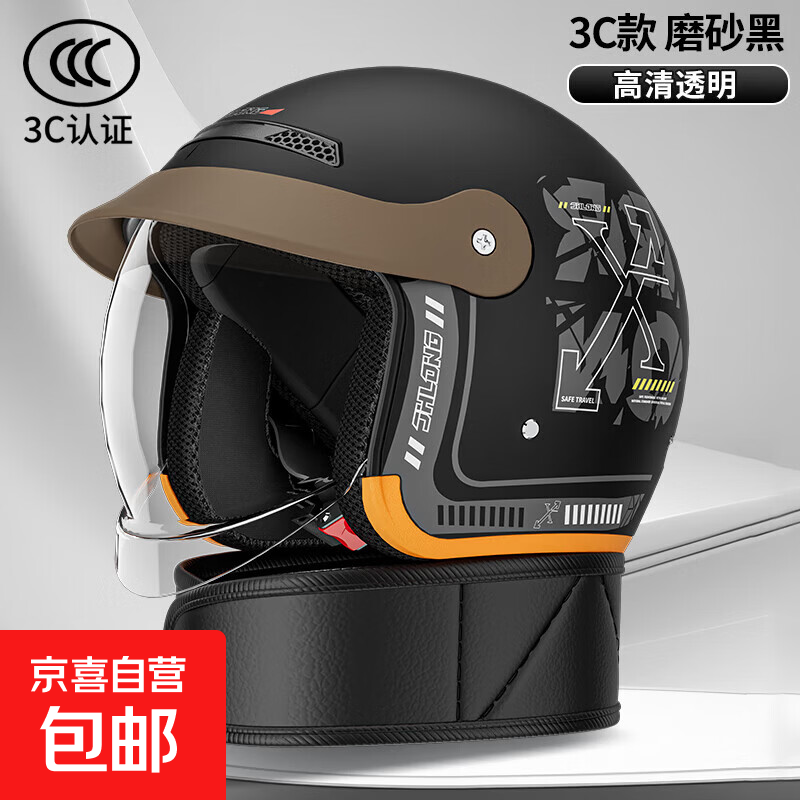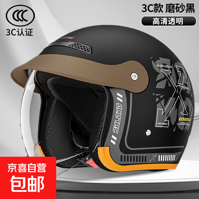 3c认证电动车头盔新国标通用女男士电瓶车防晒四季镜片夏季安全帽 3C认证 黑色【送透明短镜】